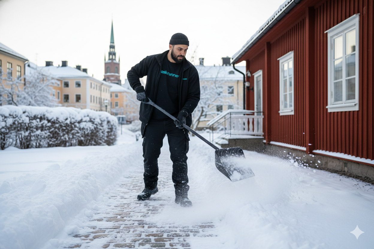 Viktigt att tänka på: Att skotta direkt sparar inte bara din rygg, det skyddar även huset från fuktskador när snön smälter. Genom TaskRunner fokuserar vi på marknära skottning och lägre tak (som garage eller uthus) för att säkerställa att arbetet utförs säkert och effektivt.